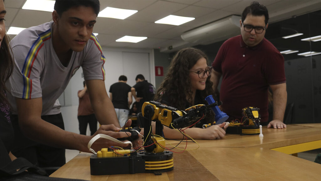 Na manhã do último sábado (09), os alunos do Terceiro Ano do Ensino Médio do Colégio Tiradentes, unidade Gameleira, participaram de uma série de oficinas promovidas pelo Centro Universitário Dom Helder. A atividade teve início às 07h30 e ocorreu na sede da Instituição, com o objetivo de promover uma aproximação dos estudantes com o ambiente acadêmico e as áreas de exatas.