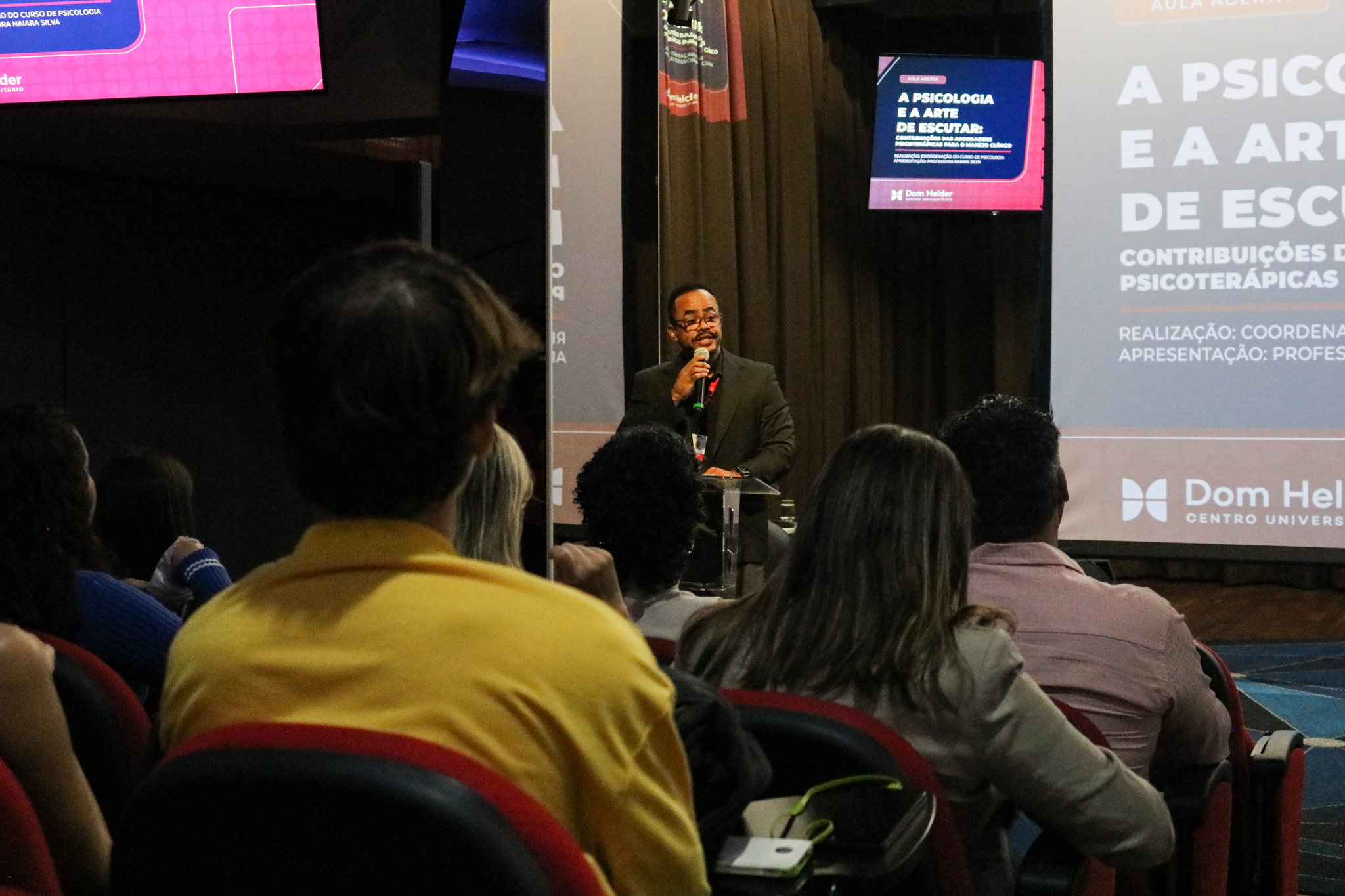 Na noite de ontem (23), o auditório do Centro Universitário Dom Helder foi palco da aula aberta “A Psicologia e a Arte de Escutar: Contribuições das Abordagens Psicoterápicas para o Manejo Clínico”, promovida gratuitamente pela coordenação do curso de Psicologia.
