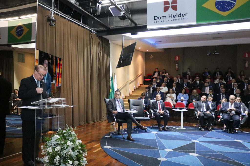 Em seu discurso, o reitor do Centro Universitário Dom Helder, professor Paulo Umberto Stumpf SJ, falou sobre a parceria estabelecida com o TRF6 desde a sua criação, a qualidade do corpo docente da instituição e a temática do congresso, citando aplicativo para a elaboração de sentenças judiciais desenvolvido pela pró-reitoria de Pesquisa e pelo curso de Ciência da Computação da Dom Helder.