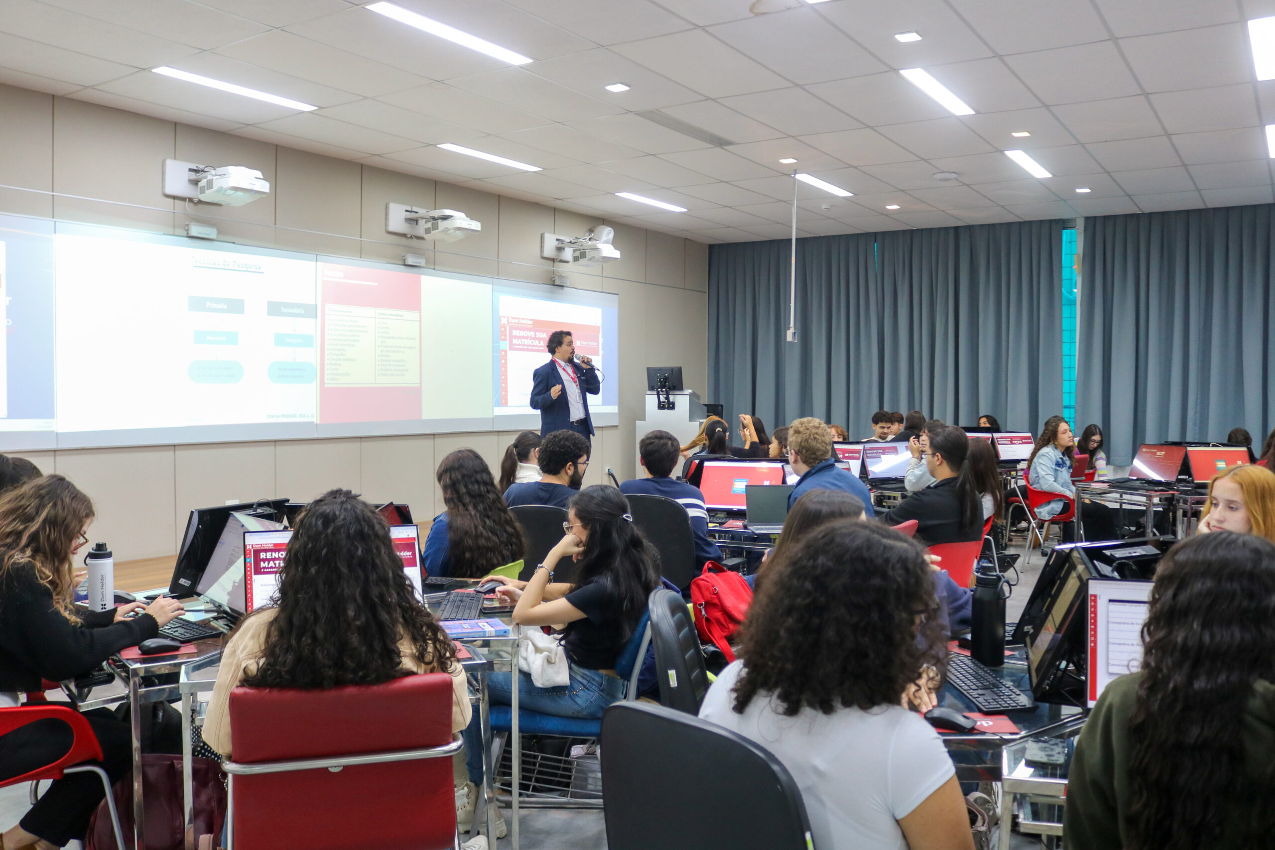 Durante a última semana, nosso bibliotecário Lucas Martins realizou diversos treinamentos para alunos do curso de Direito. A atividade foi promovida em parceria com o Núcleo de Ensino Personalizado para a disciplina Psicologia e Proficiência.