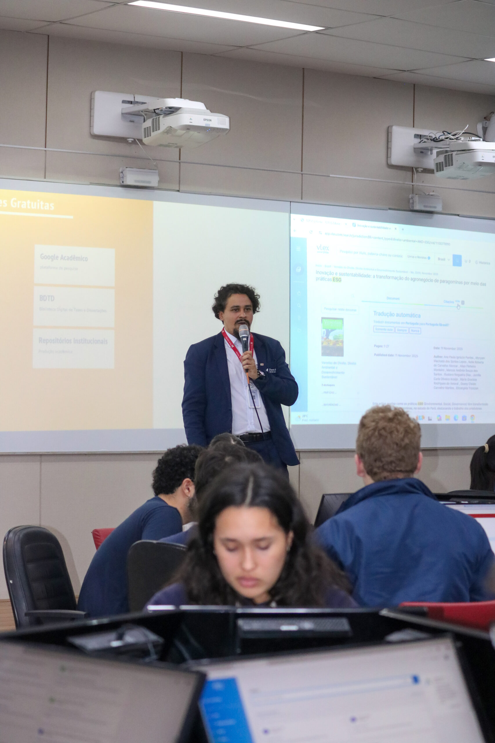 O tema dos treinamentos foi “Pesquisa Inteligente com IAs Generativas: recursos técnicos, plataformas, instrumentos e estratégias de pesquisa”, familiarizando os discentes com novos sistemas, fontes e procedimentos.