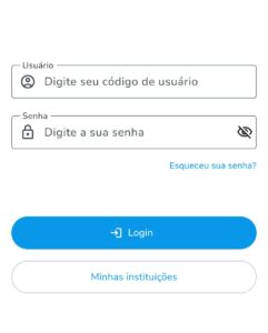 Em seguida, digite o usuário e a senha do Portal Acadêmico. No primeiro acesso, utilize a matrícula e data de nascimento.