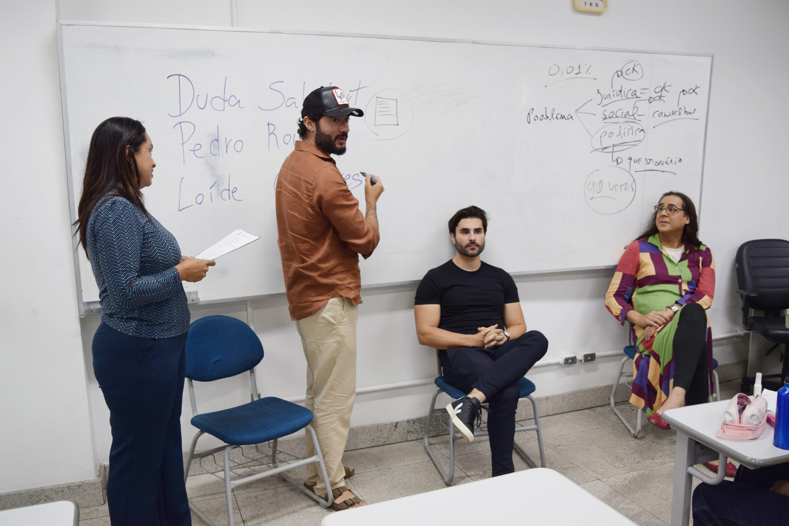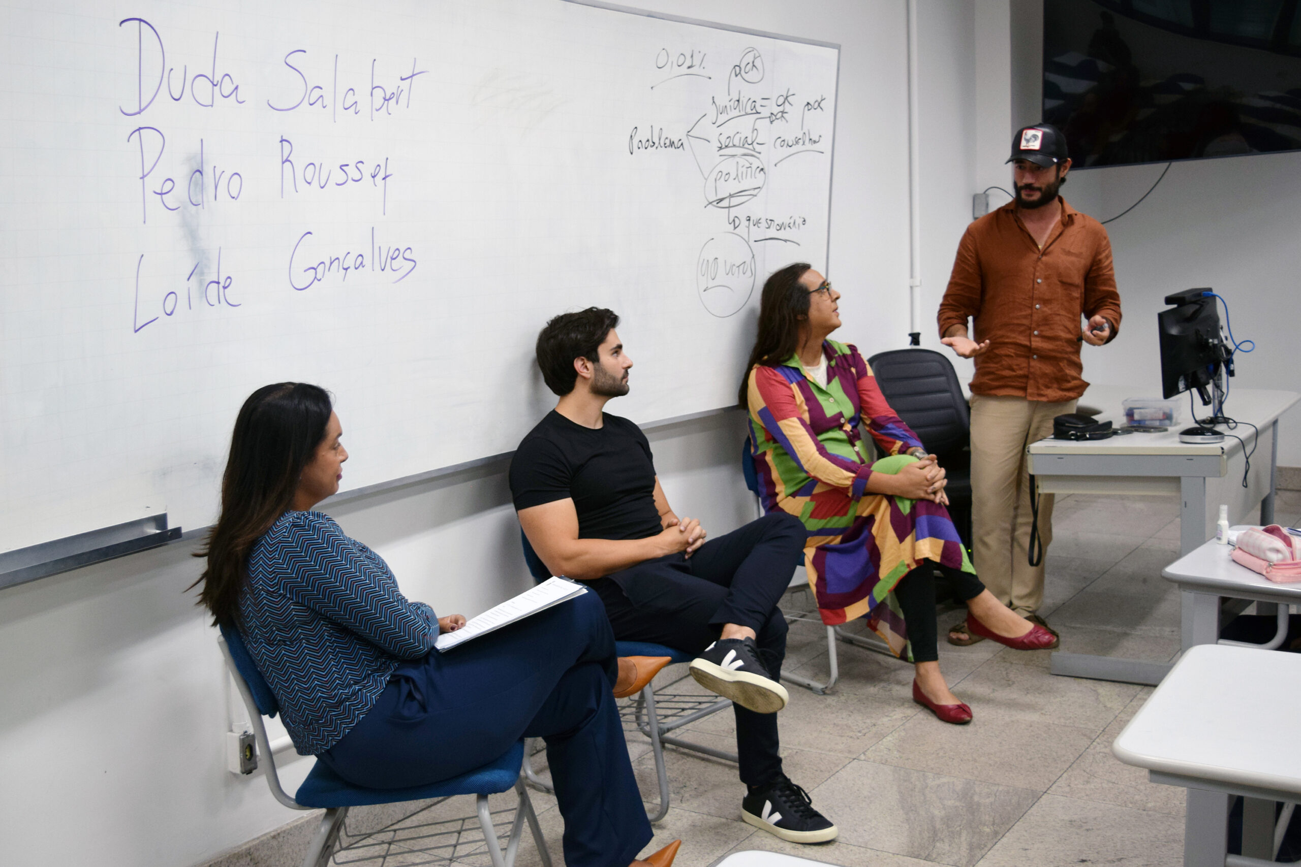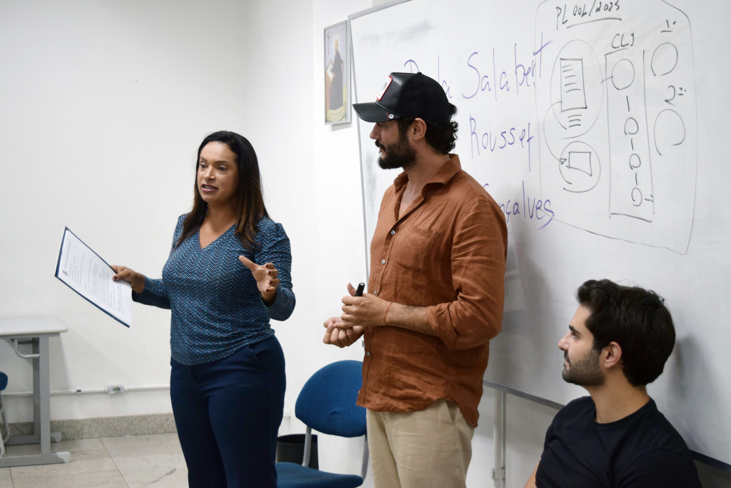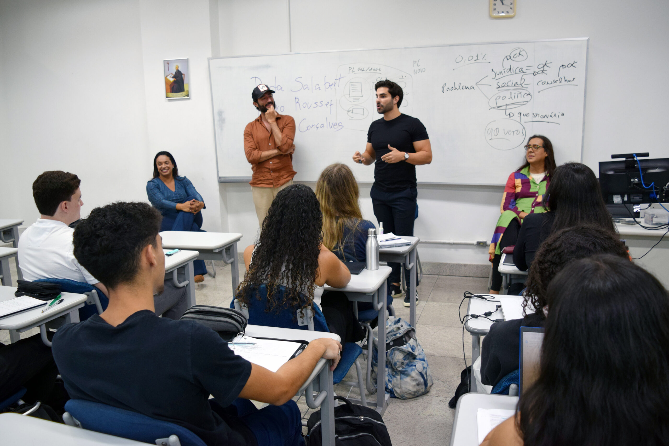 Os estudantes da disciplina Teoria Geral do Direito receberam, na segunda-feira (24), três convidados de destaque: a deputada federal Duda Salabert, a vereadora Loíde Gonçalves e o vereador Pedro Rousseff. A atividade, organizada pelo professor Gabriel Azevedo, teve como objetivo retomar o contrato pedagógico criado no início do semestre e reforçar a ideia de que as normas jurídicas dependem de comportamento, conteúdo e convivência estruturados por método.