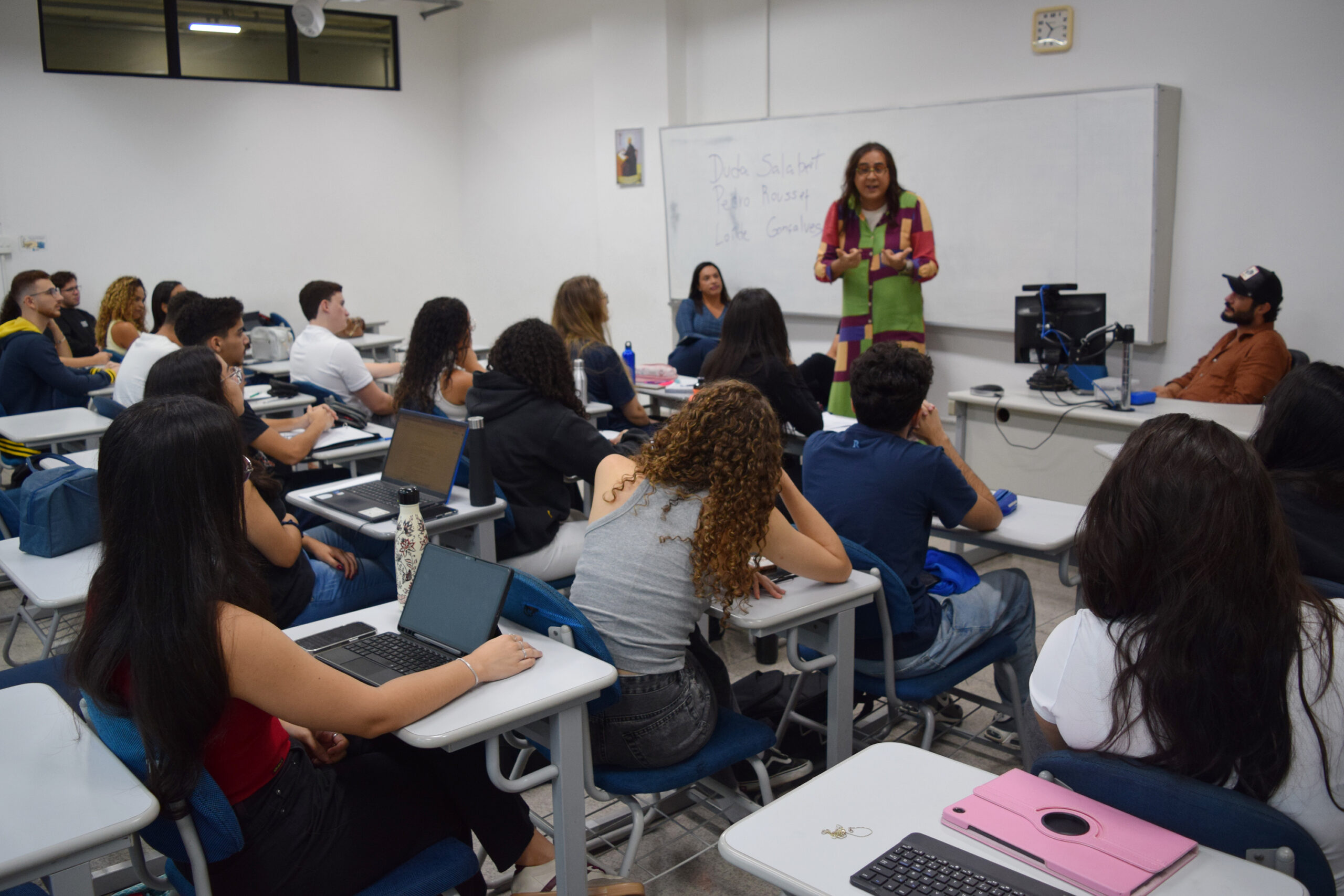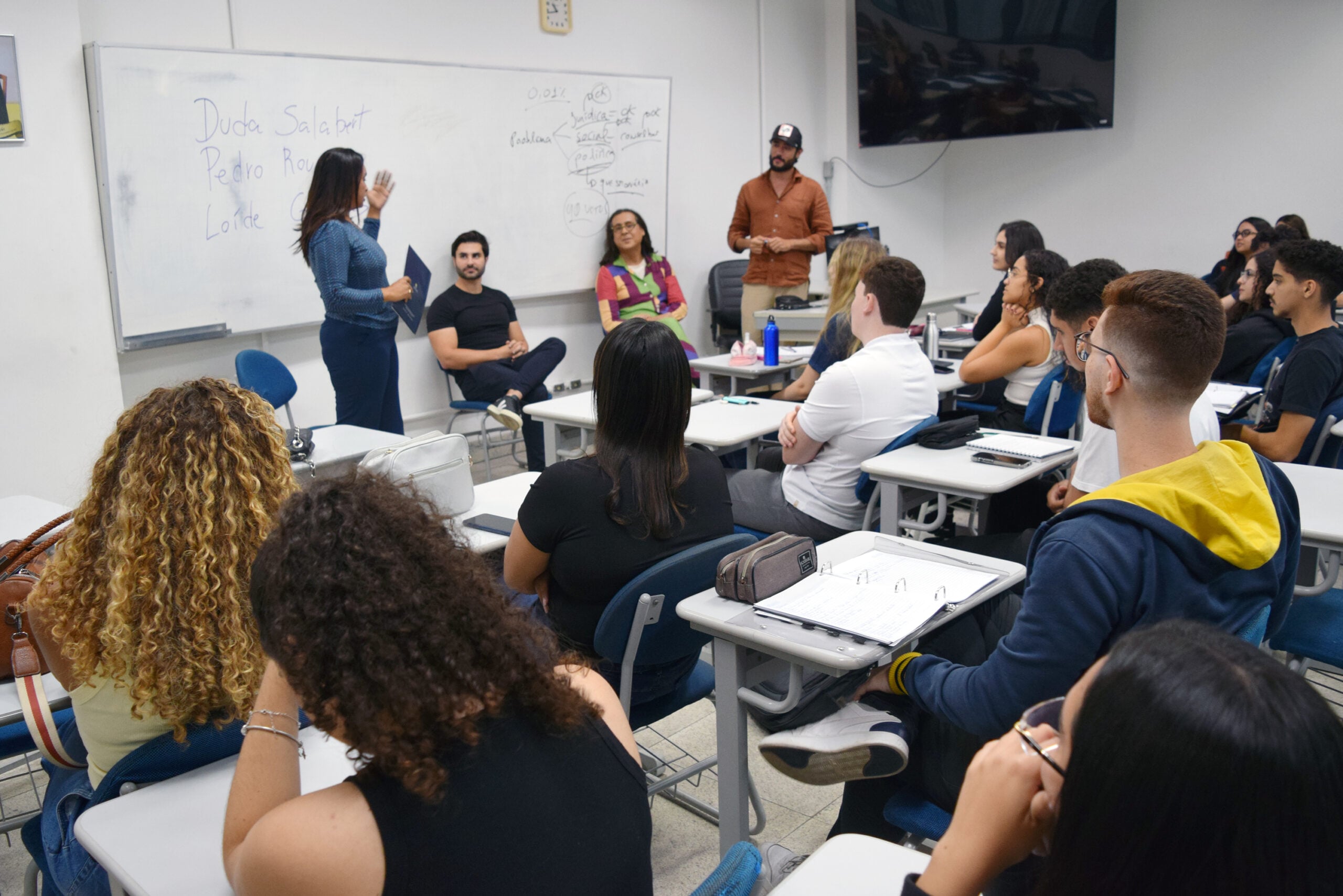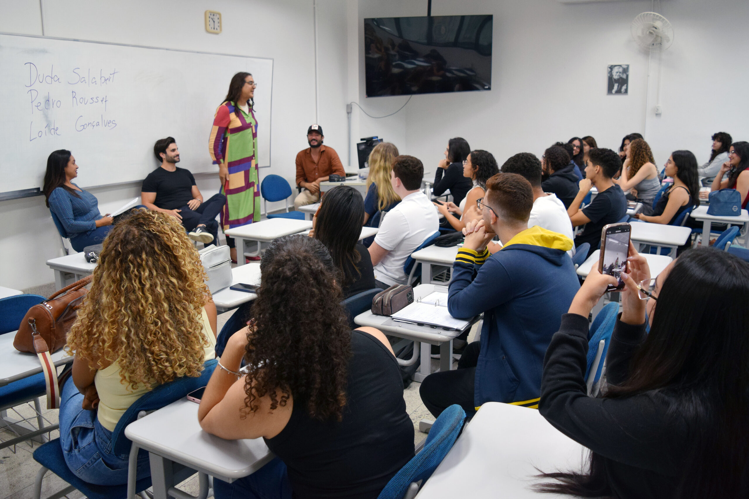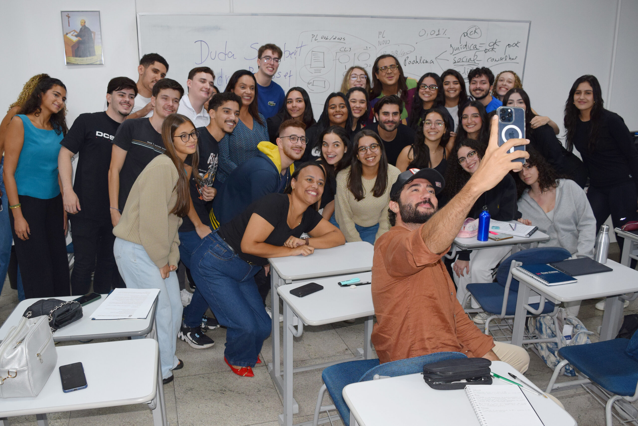 Os estudantes da disciplina Teoria Geral do Direito receberam, na segunda-feira (24), três convidados de destaque: a deputada federal Duda Salabert, a vereadora Loíde Gonçalves e o vereador Pedro Rousseff. A atividade, organizada pelo professor Gabriel Azevedo, teve como objetivo retomar o contrato pedagógico criado no início do semestre e reforçar a ideia de que as normas jurídicas dependem de comportamento, conteúdo e convivência estruturados por método.