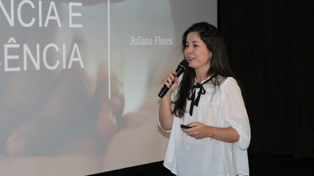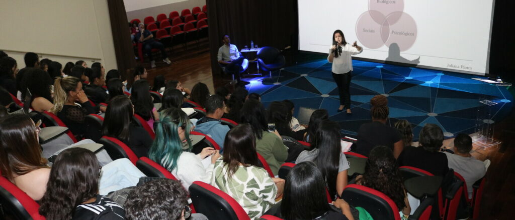 O evento contou com a participação da professora Juliana Flores, docente da disciplina Desenvolvimento Humano: Infância e Adolescência, fundamental para a compreensão dos processos que estruturam as diferentes etapas da vida.