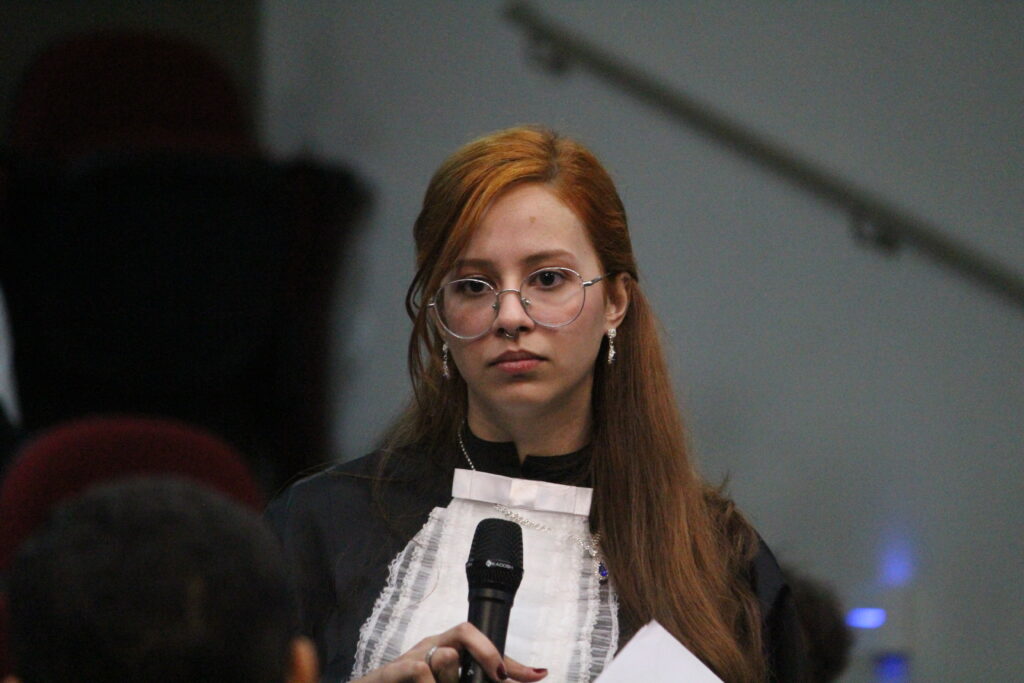 Na terça-feira (25), pela manhã, foi a vez da turma D1M. Neste julgamento, as turmas do 1º período da manhã se dividiram entre acusação e defesa. O caso, real adaptado, envolveu a ré Joana Matos, acusada de matar a facadas sua prima e sócia, Diana Moreira, sob a suspeita de que a vítima estaria retirando dinheiro da empresa.