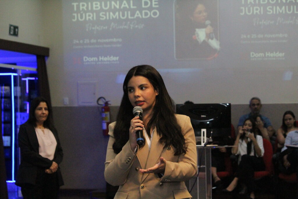 Entre os dias 24 (segunda-feira) e 25 (terça-feira), o Centro Universitário Dom Helder promoveu mais uma edição do Tribunal do Júri Simulado Michel Reiss. Realizado no auditório da Instituição, o evento foi conduzido pela Professora Maria Carolina Reis e pelo Professor Carlos Henrique Amaral, reunindo estudantes que atuaram como jurados e contando também com a presença do público externo. A atividade foi direcionada aos alunos do 1º e do 7º períodos.