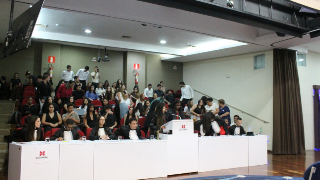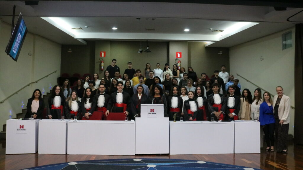 A iniciativa integra a programação acadêmica da Dom Helder e tem como objetivo reproduzir julgamentos reais para fortalecer a prática de argumentação e oratória dos participantes. Para cada dia de participação, os estudantes receberam 2 horas de atividades complementares.