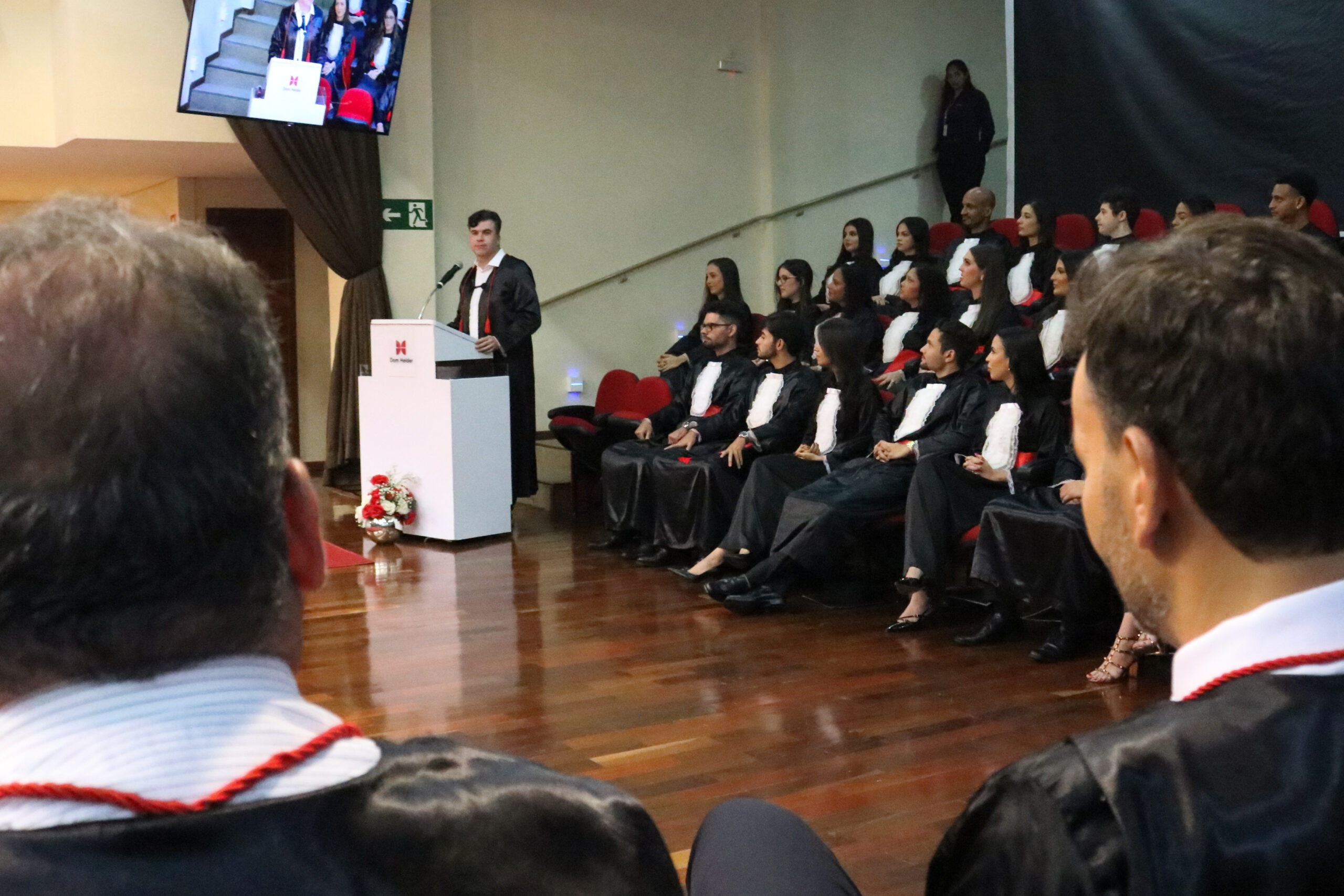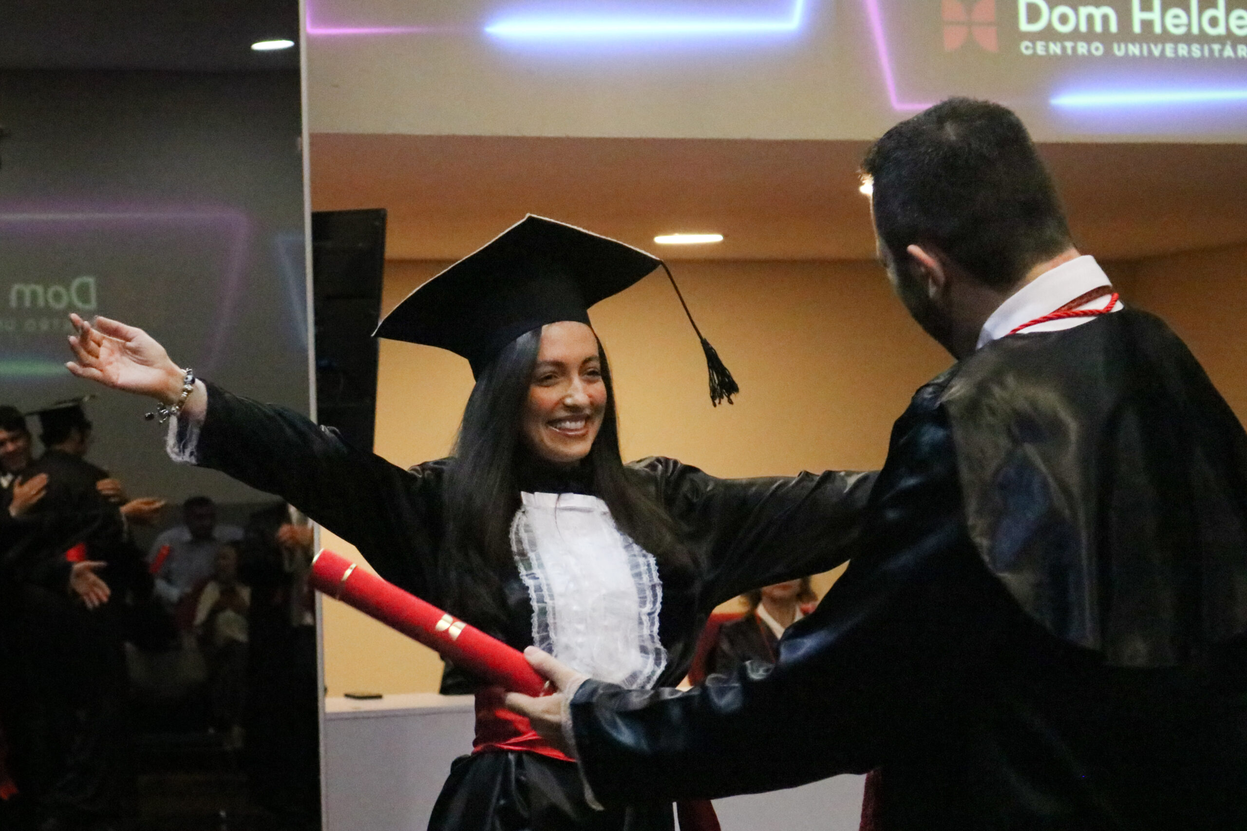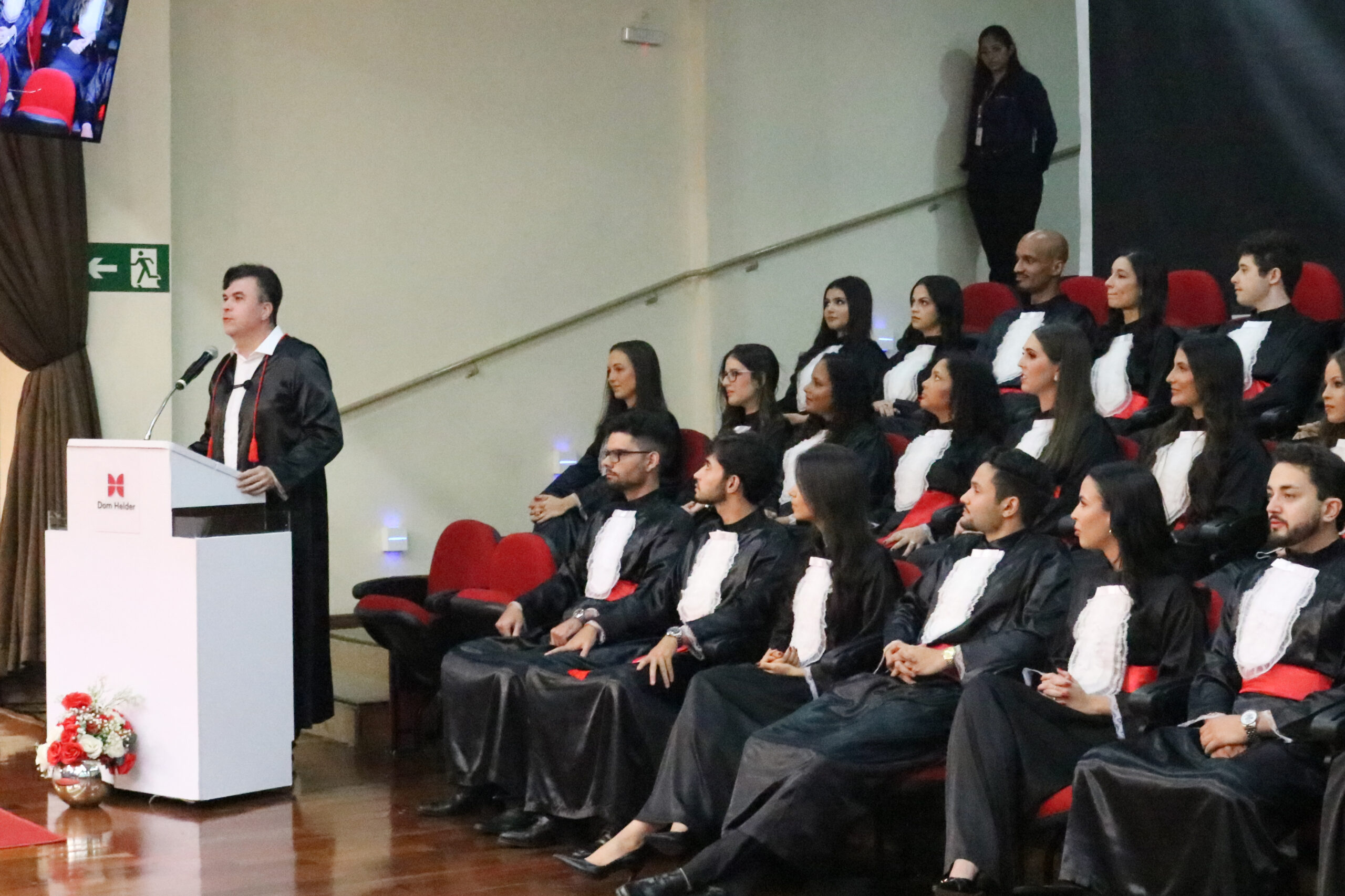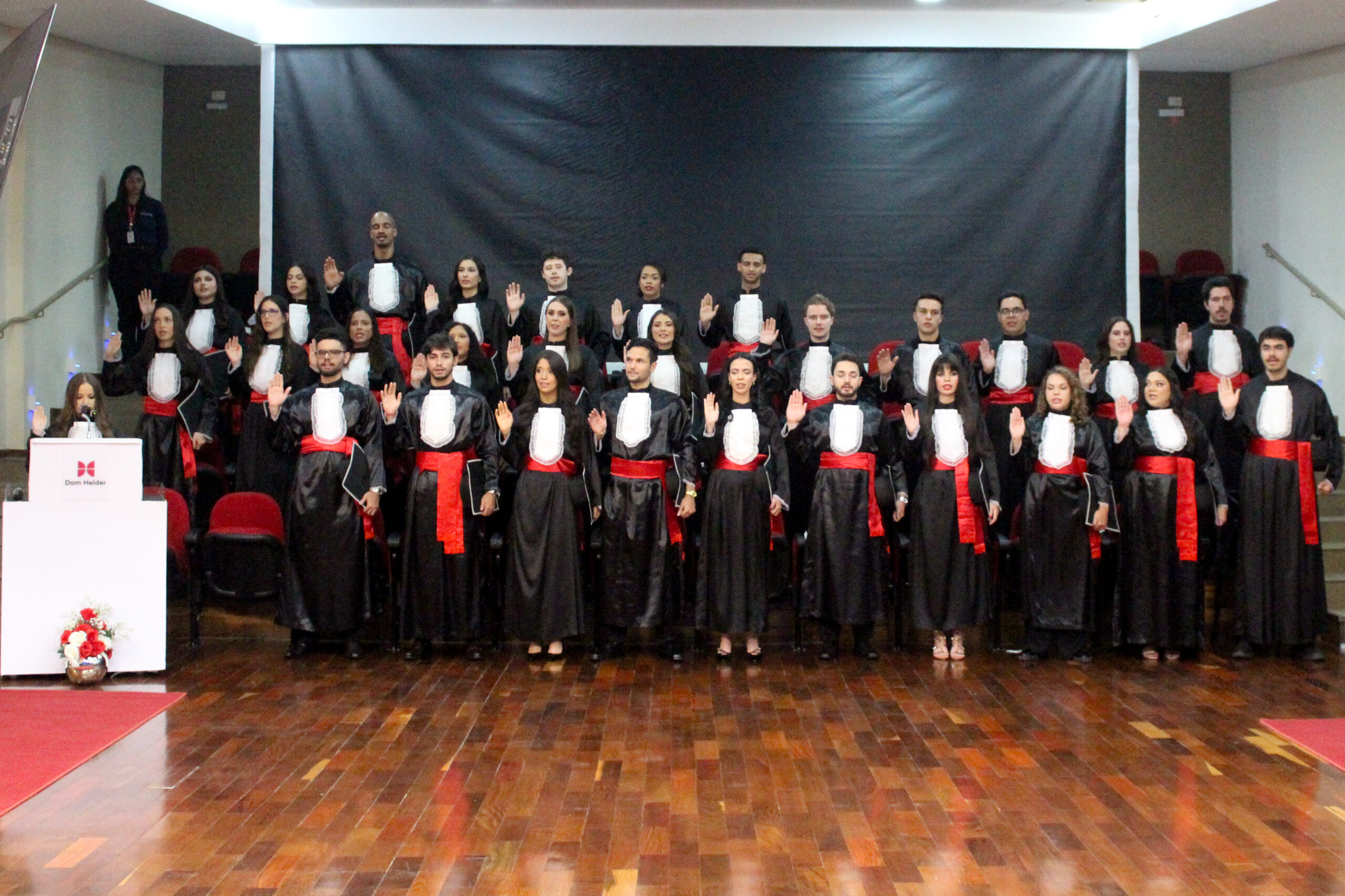 No último sábado (7), às 18h, o auditório da Dom Helder foi palco da colação de grau de uma das turmas de Direito (matutino) da instituição. Familiares e amigos dos formandos estiveram presentes para prestigiar e celebrar esse emocionante marco da jornada acadêmica.