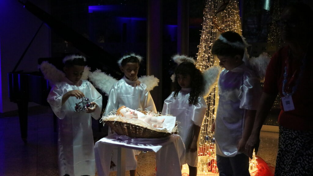 Anjinhos representaram o nascimento de Jesus e encantaram os presentes