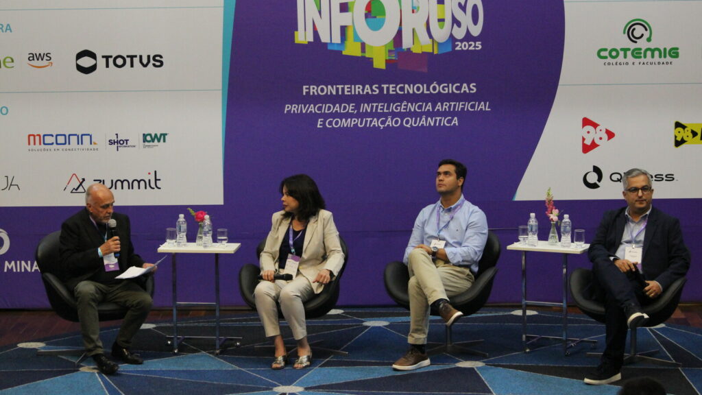 O encerramento do Inforuso foi marcado pelo painel “O futuro da construção com IA: integrando ética e conformidade nas operações das organizações”, com a participação de Reinaldo Sima, Diretor de Tecnologia e Transformação Digital da MRV, Eduardo Salomão, Gestor Executivo de Infraestrutura de TI e SI da MRV, e Alex de Souza Medeiros, Diretor de GRC e Privacidade da MRV Engenharia, mediado por Márcio Rocha, VP de Administração, Finanças, Gestão de Riscos e Compliance da Sucesu Minas.