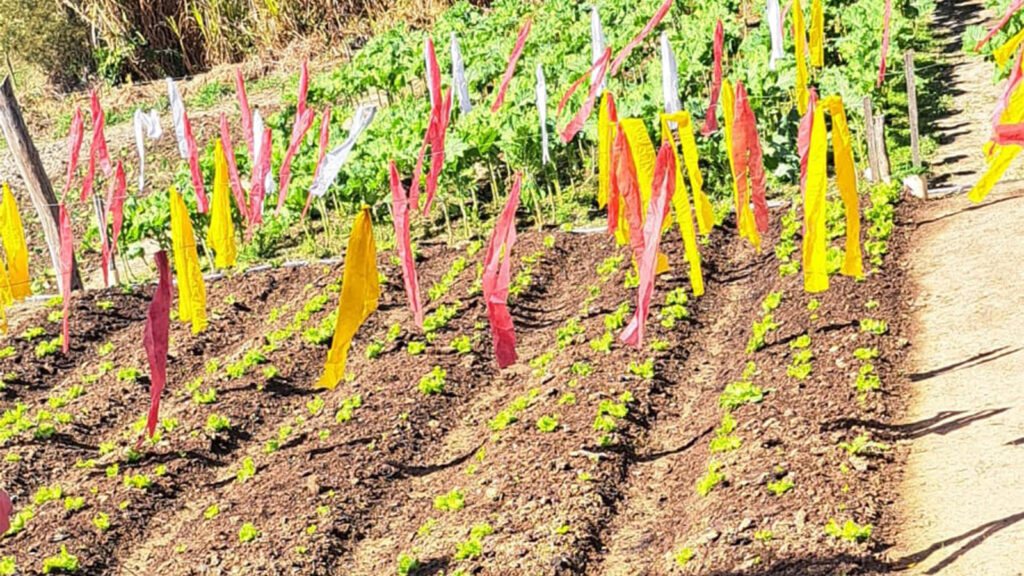 Entre os aspectos observados nos espaços cultivados estão práticas criativas para evitar a atuação de aves predatórias, como o uso de espantalhos: objetos móveis e coloridos que ajudam a proteger as sementes e as plantas pequenas. Além disso, há um resgate de tradições culturais, com referências às práticas de agricultores familiares, demonstrando uma conexão entre saberes tradicionais e educação ambiental.