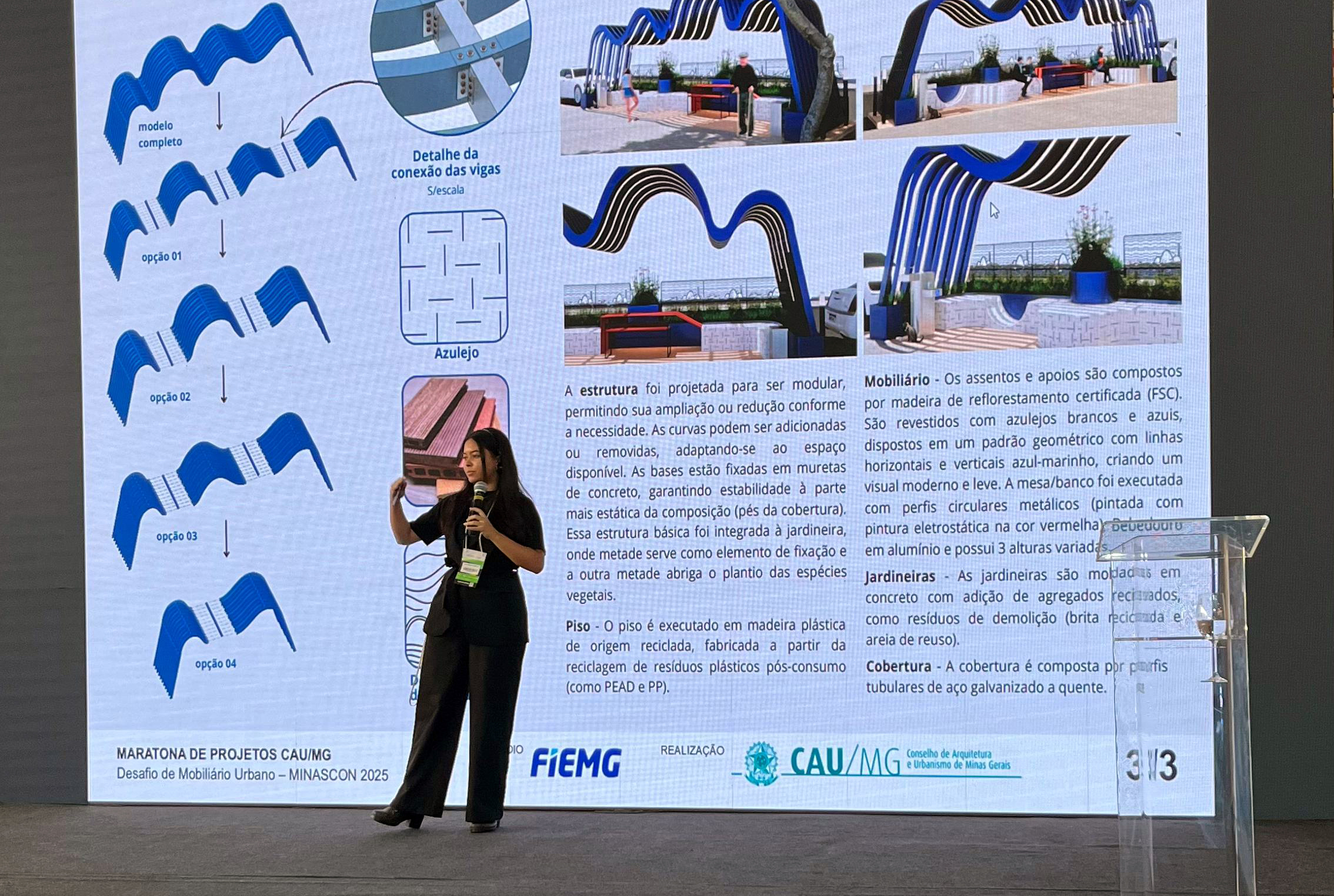 A equipe ARQDOM, formada por estudantes da Dom Helder, recebeu menção honrosa na 2ª Maratona de Projetos do CAU/MG – Desafio de Mobiliário Urbano, promovida pelo Conselho de Arquitetura e Urbanismo de Minas Gerais durante o Minascon 2025.