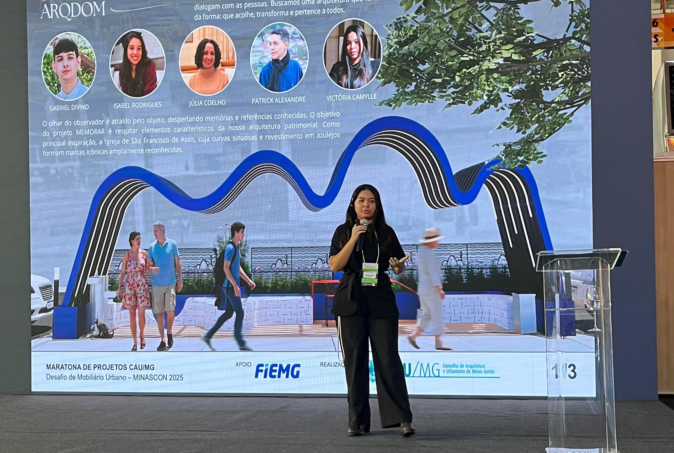 A Dom Helder recebeu menção honrosa com o projeto Memorar, desenvolvido pelos estudantes Victoria Camylle, Gabriel Divino, Isabel Rodrigues, Julia Coelho e Patrick Alexandre. No texto de abertura, o grupo explica que o objetivo foi “resgatar elementos característicos da nossa arquitetura patrimonial”. Como referência central, os estudantes destacam a Igreja de São Francisco de Assis, projetada por Oscar Niemeyer, “cujas curvas sinuosas e revestimento em azulejos formam marcas icônicas amplamente reconhecidas”.