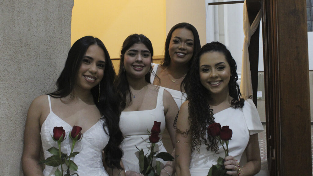 Formandos carregavam rosas para entrar na Igreja