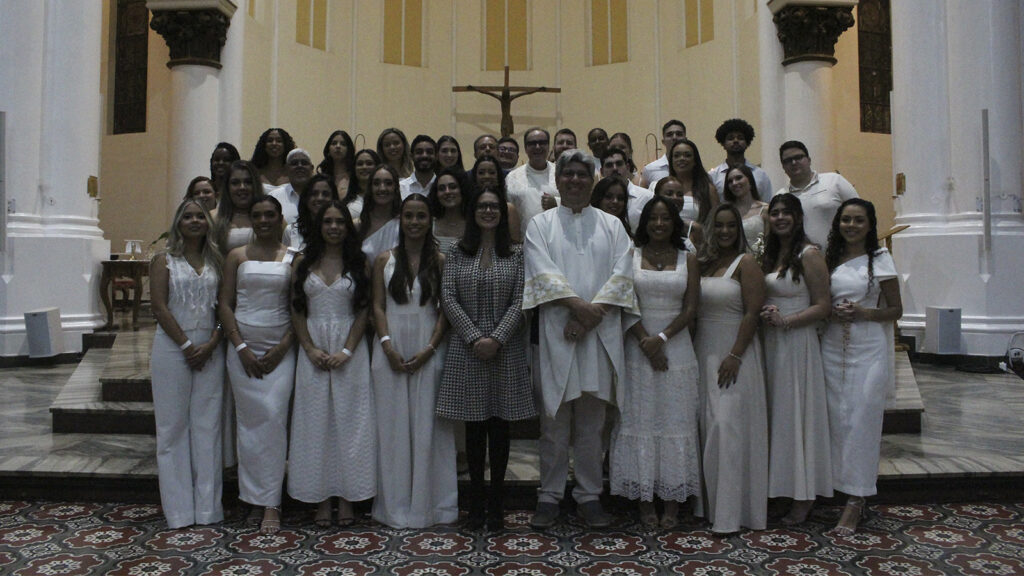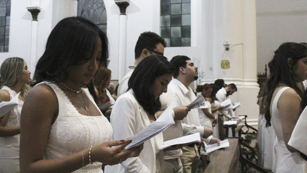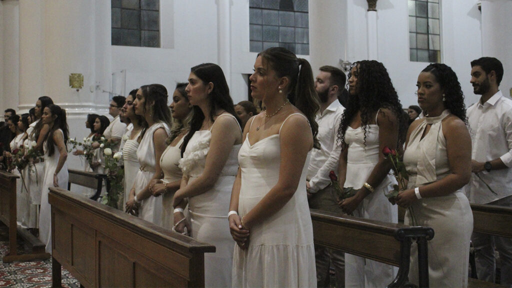 Em uma cerimônia marcada por muita emoção, a missa contou também com a presença de pais, familiares e amigos, que se uniram aos formandos para celebrar esse importante momento de conquista.
