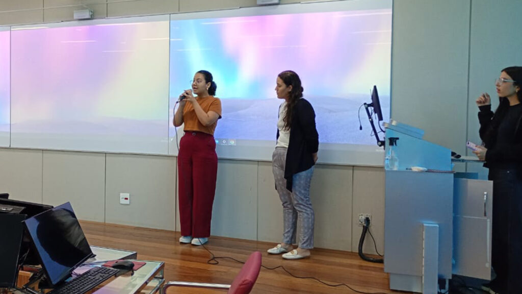 Durante a atividade em grupo, os(as) monitores(as) realizaram pesquisas orientadas sobre os seguintes temas: