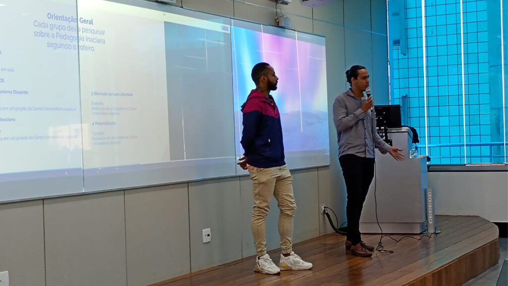 Cada grupo foi desafiado a identificar como esses princípios são aplicados em projetos reais da Dom Helder, fortalecendo a conexão entre teoria e prática.