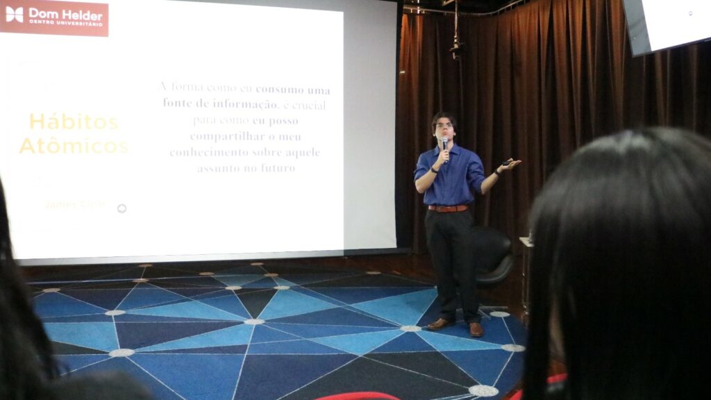Na ocasião, o palestrante debateu sobre o livro “Hábitos Atômicos”, de James Clear, livro reconhecido por ser um manual de transformação de hábitos para a busca de melhores objetivos de vida, como ponto de partida para a orientação de estudantes dos primeiros períodos de diversos cursos da Dom Helder. Na palestra, foram debatidas as ideias centrais do livro, visando, principalmente, as ideias abstratas para a prática. A mistura entre o que consumimos, e o que conseguimos materializar para nosso entendimento, foi uma das grandes dicas de pequenas mudanças para grandes resultados.