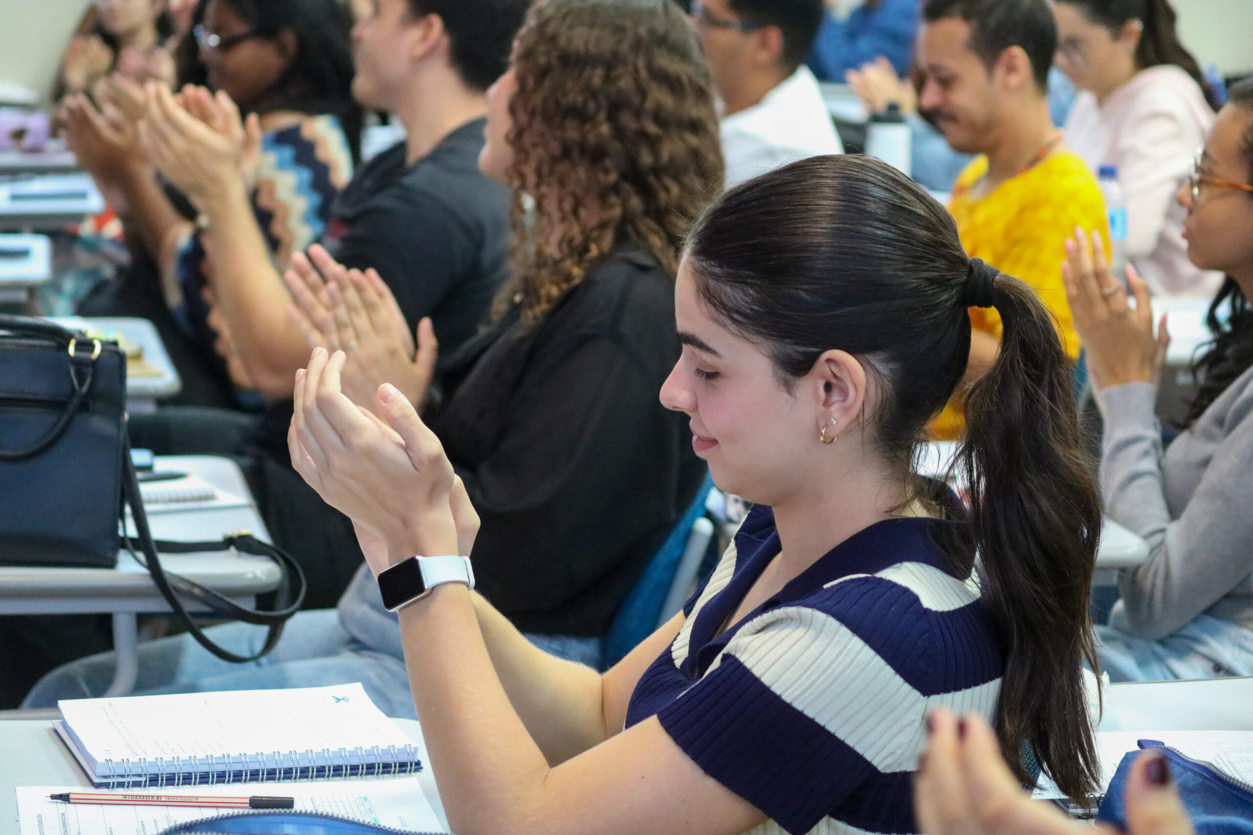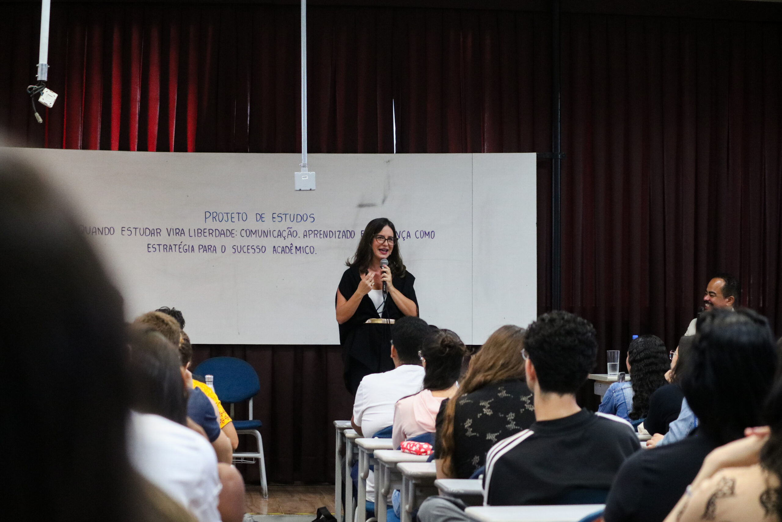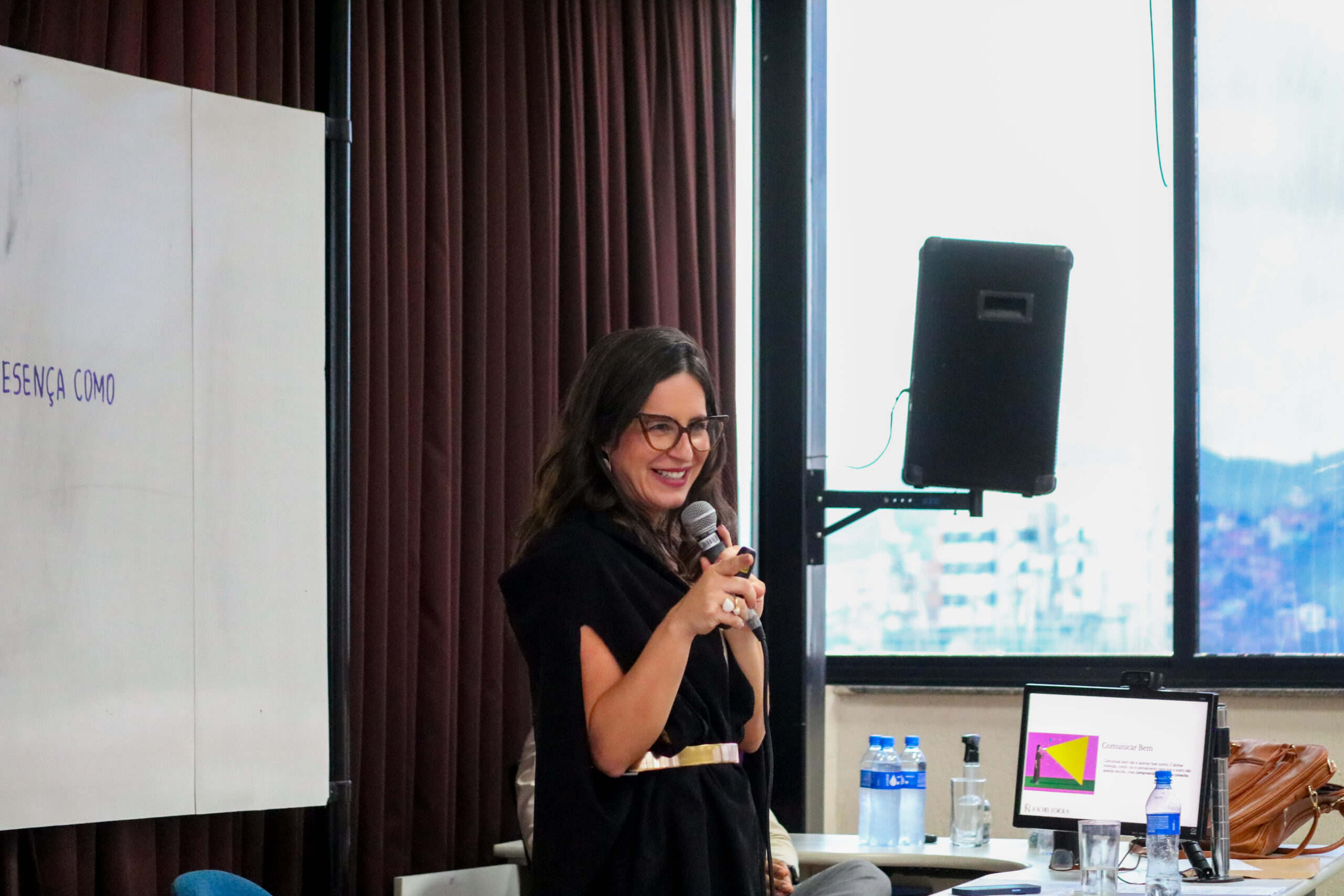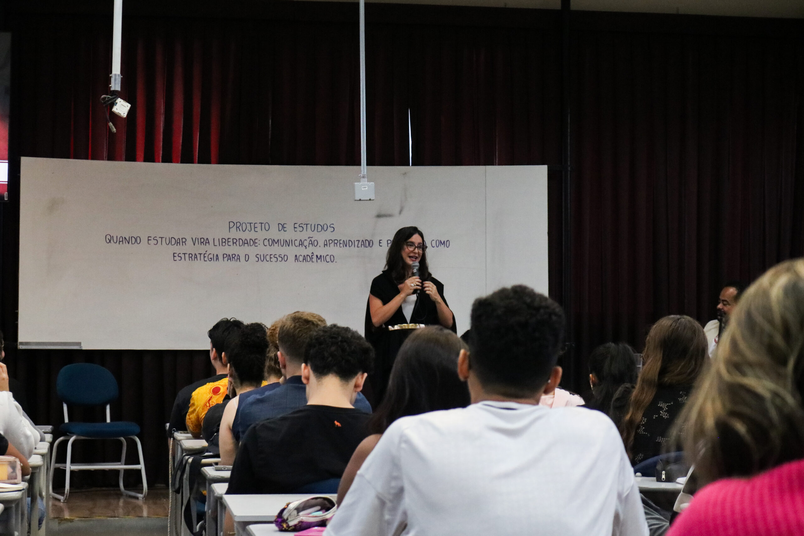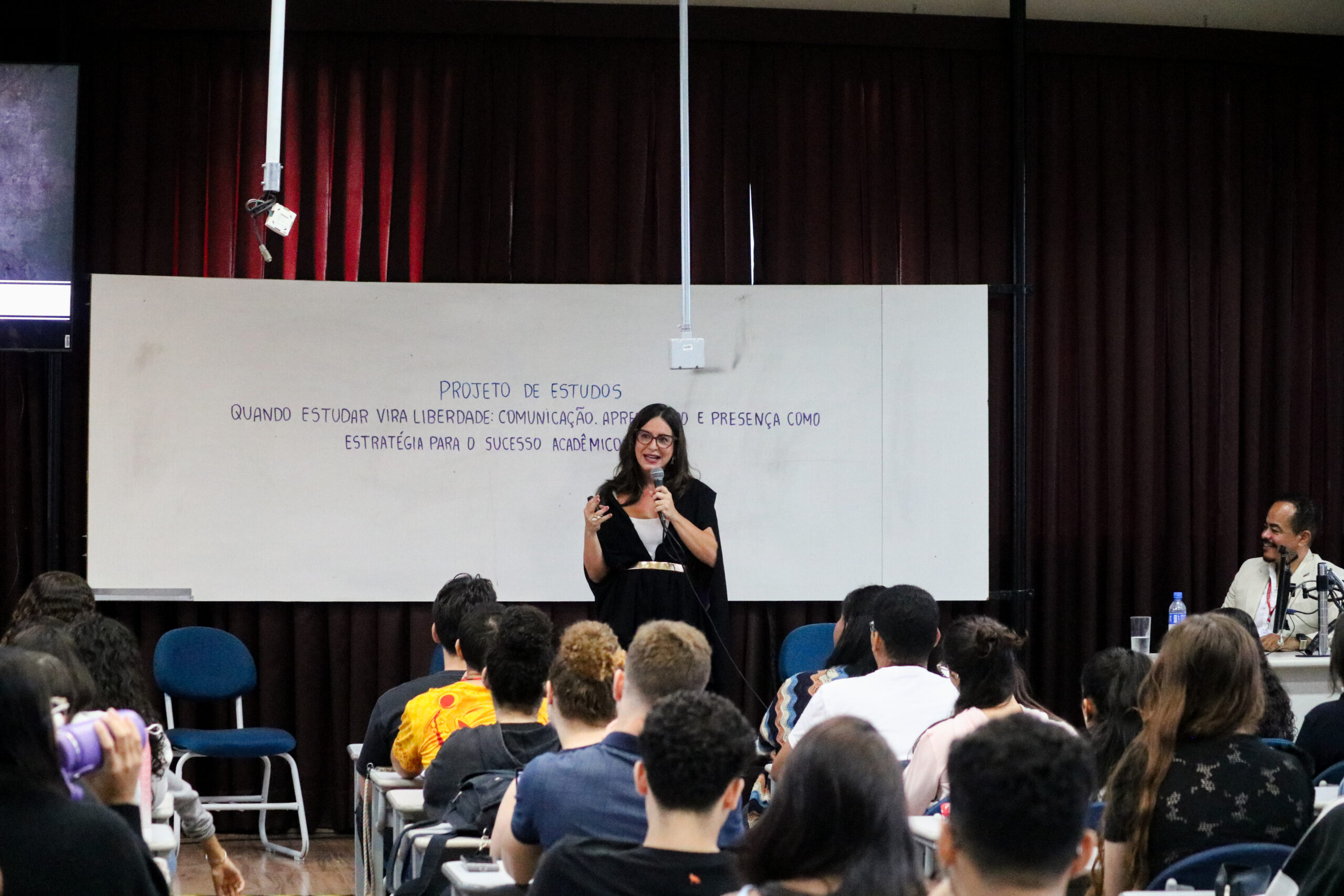 Seguindo o tema da edição atual, “quando estudar vira liberdade: comunicação, aprendizado e presença como estratégia para o sucesso acadêmico”, Rachel falou sobre liberdade cognitiva, simbólica e discursiva, passando por aspectos como perfis de aprendizado, neuroplasticidade, hábitos, consistência, narrativa, presença e o “C.O.M.U.N.I.C.A.R.” (curiosidade, organização, memória com sentido, uso da palavra, narrativa, interação, consciência, autoria e responsabilidade).