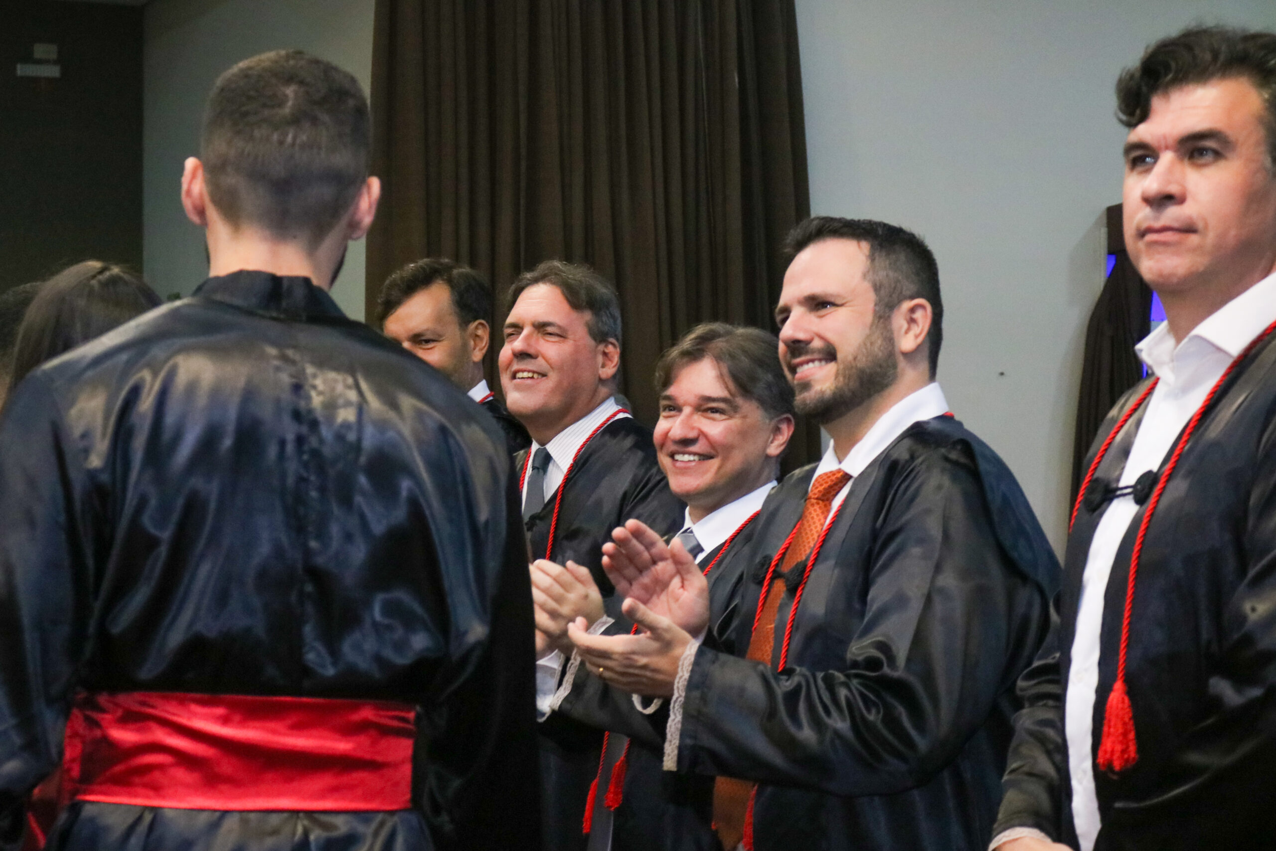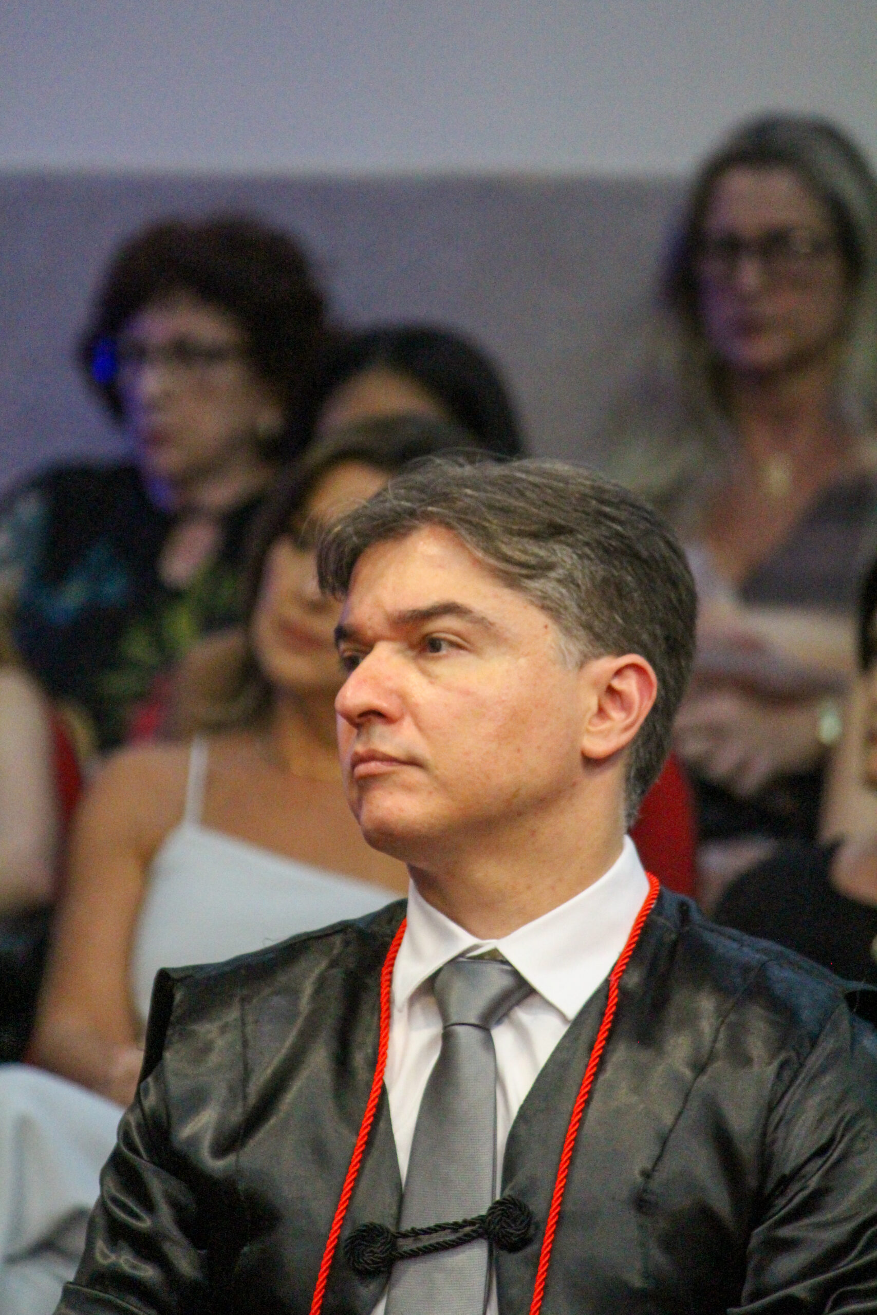 A mesa solene foi composta pelo reitor da Dom Helder, Paulo Umberto Stumpf; pelos pró-reitores Francisco Haas, José Antônio de Sousa Neto, Anacélia Santos Rocha e Caio Lara; e pela coordenadora do curso, Helen Cristina de Almeida Silva.