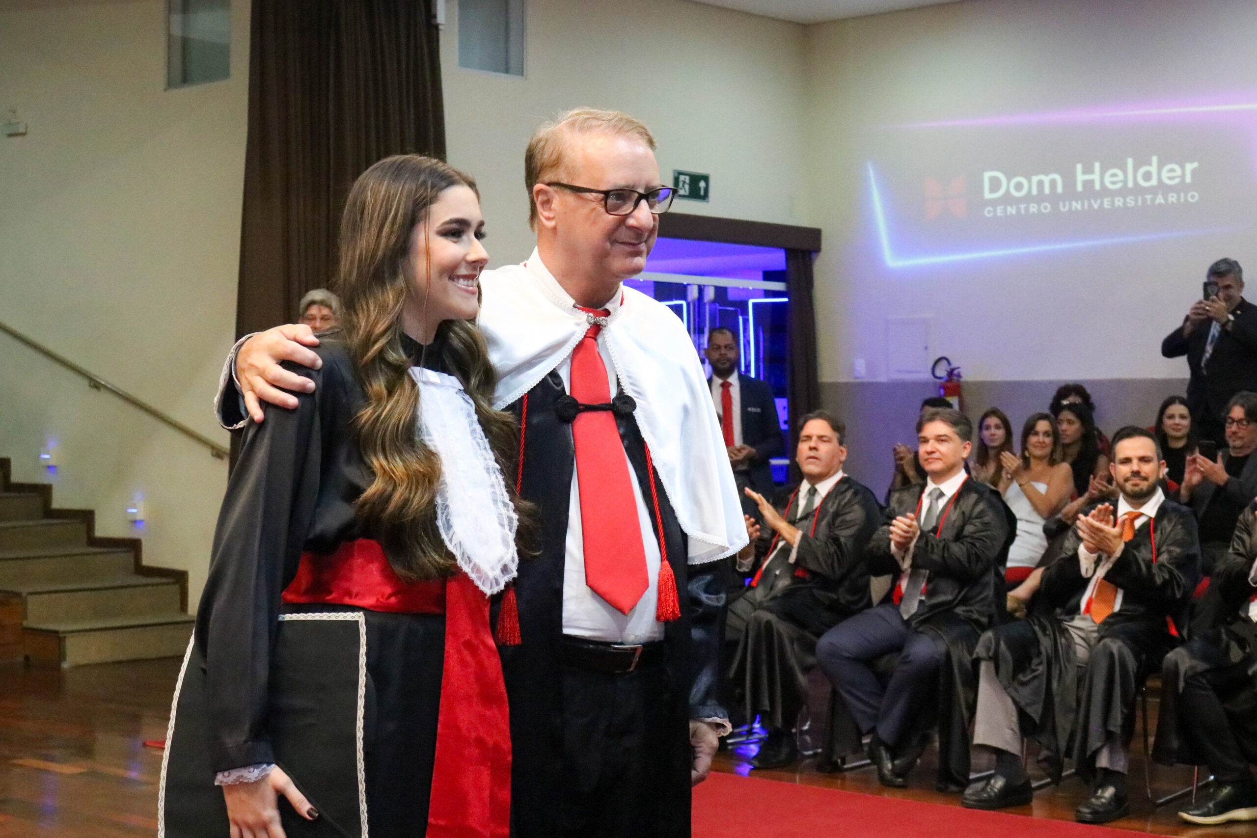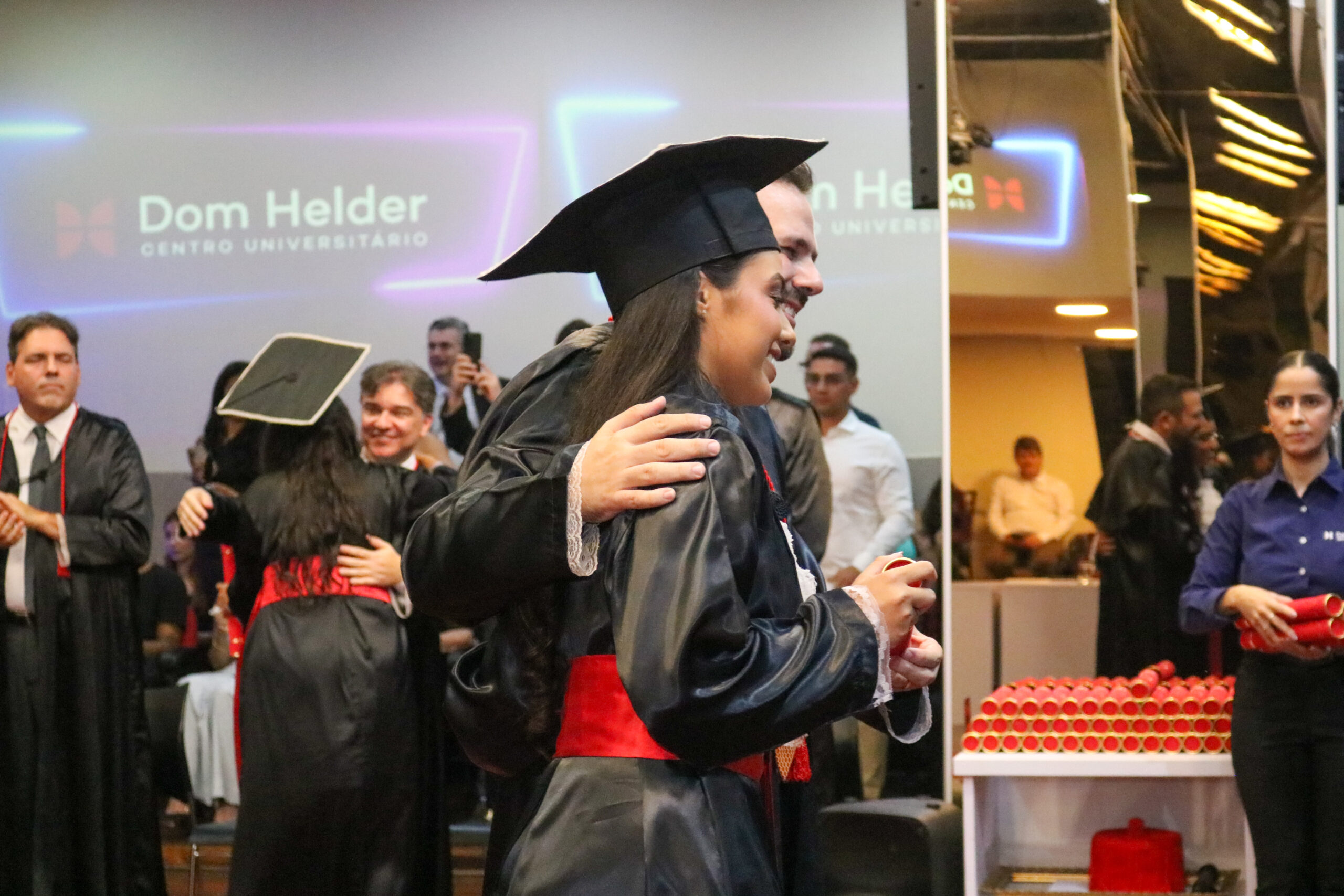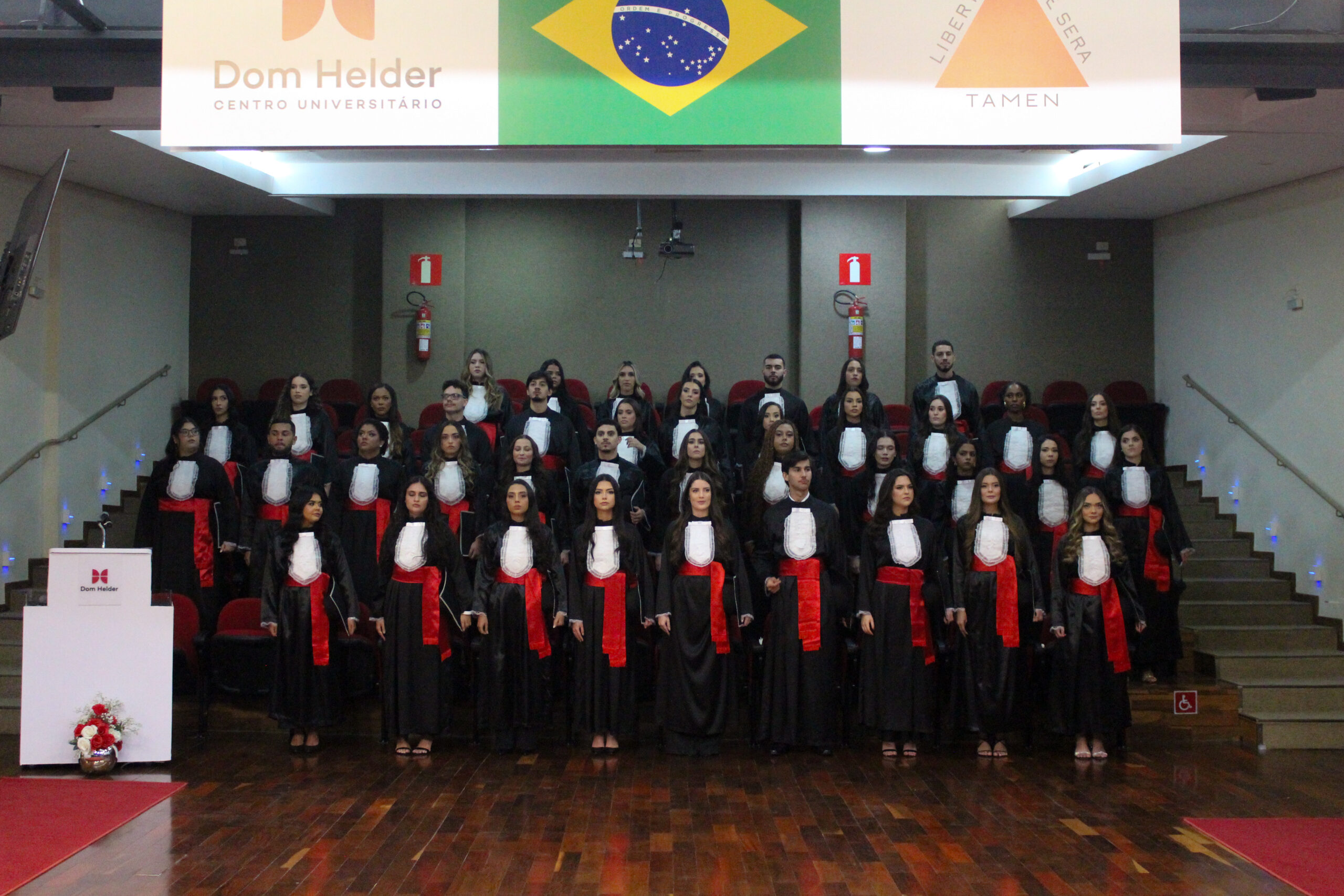 O auditório da Dom Helder recebeu, no último sábado (7), às 20h, a emocionante colação de grau de uma das turmas de Direito (matutino) da instituição. A ocasião foi marcada por muita celebração e afeto dos familiares e amigos presentes.