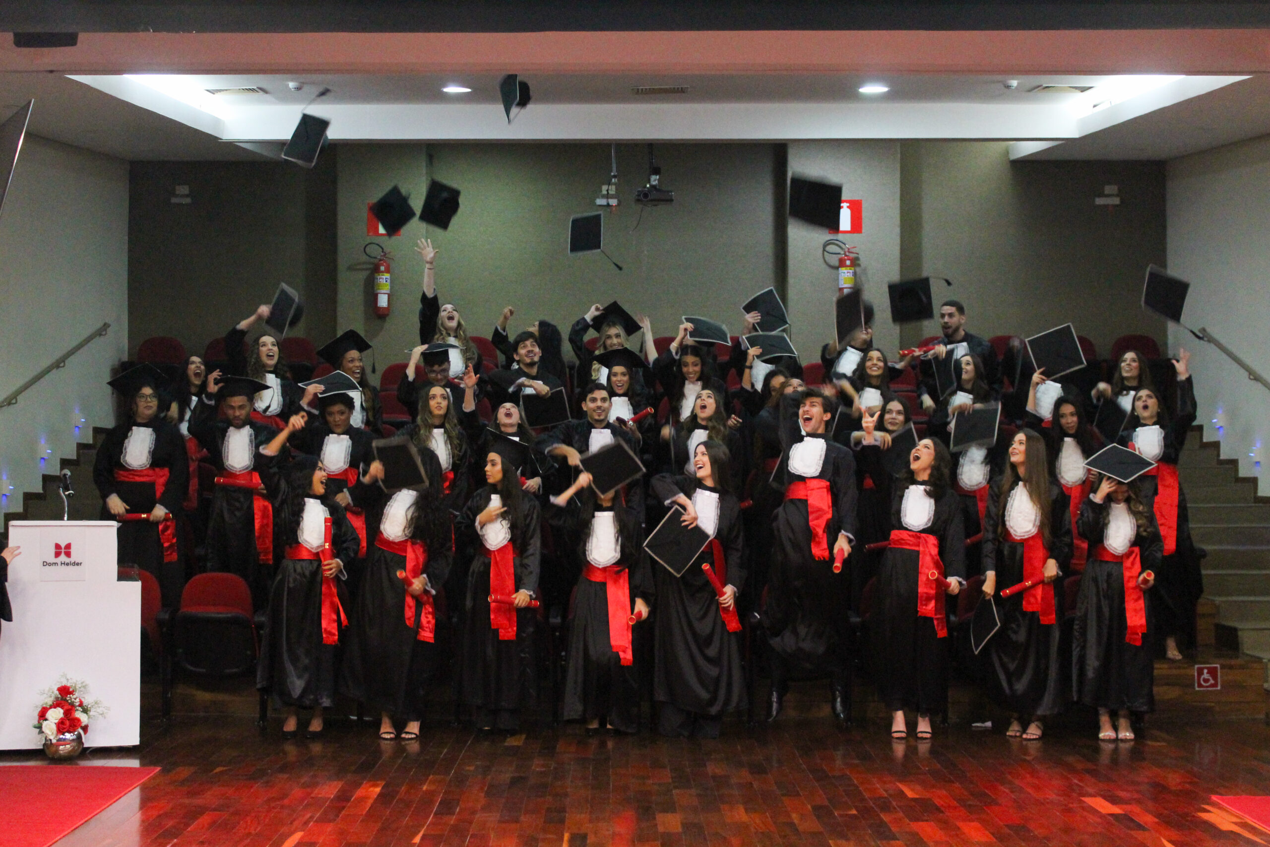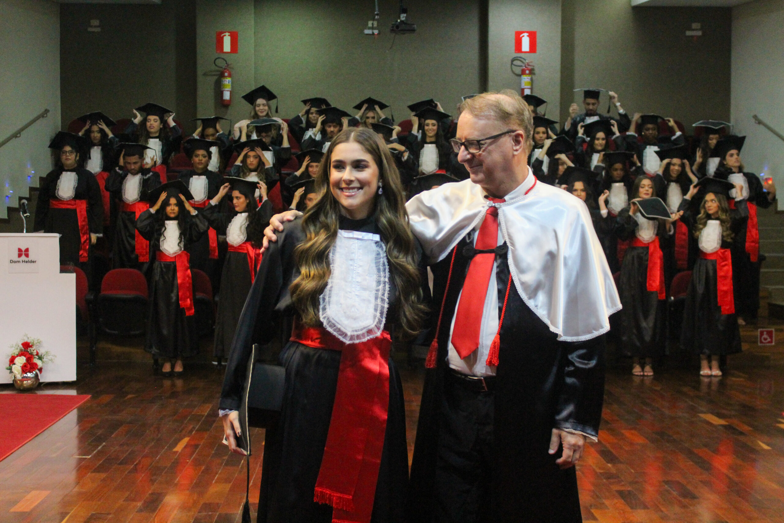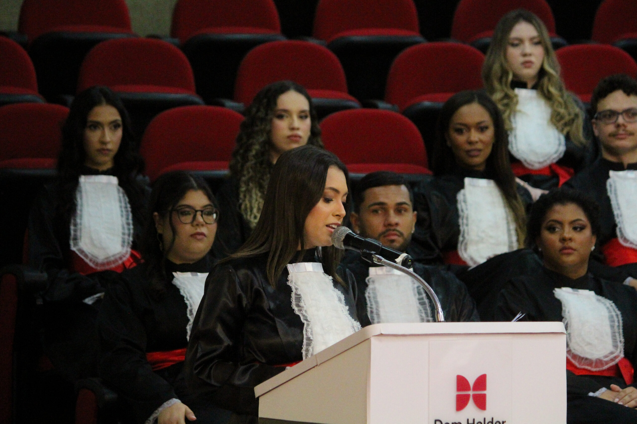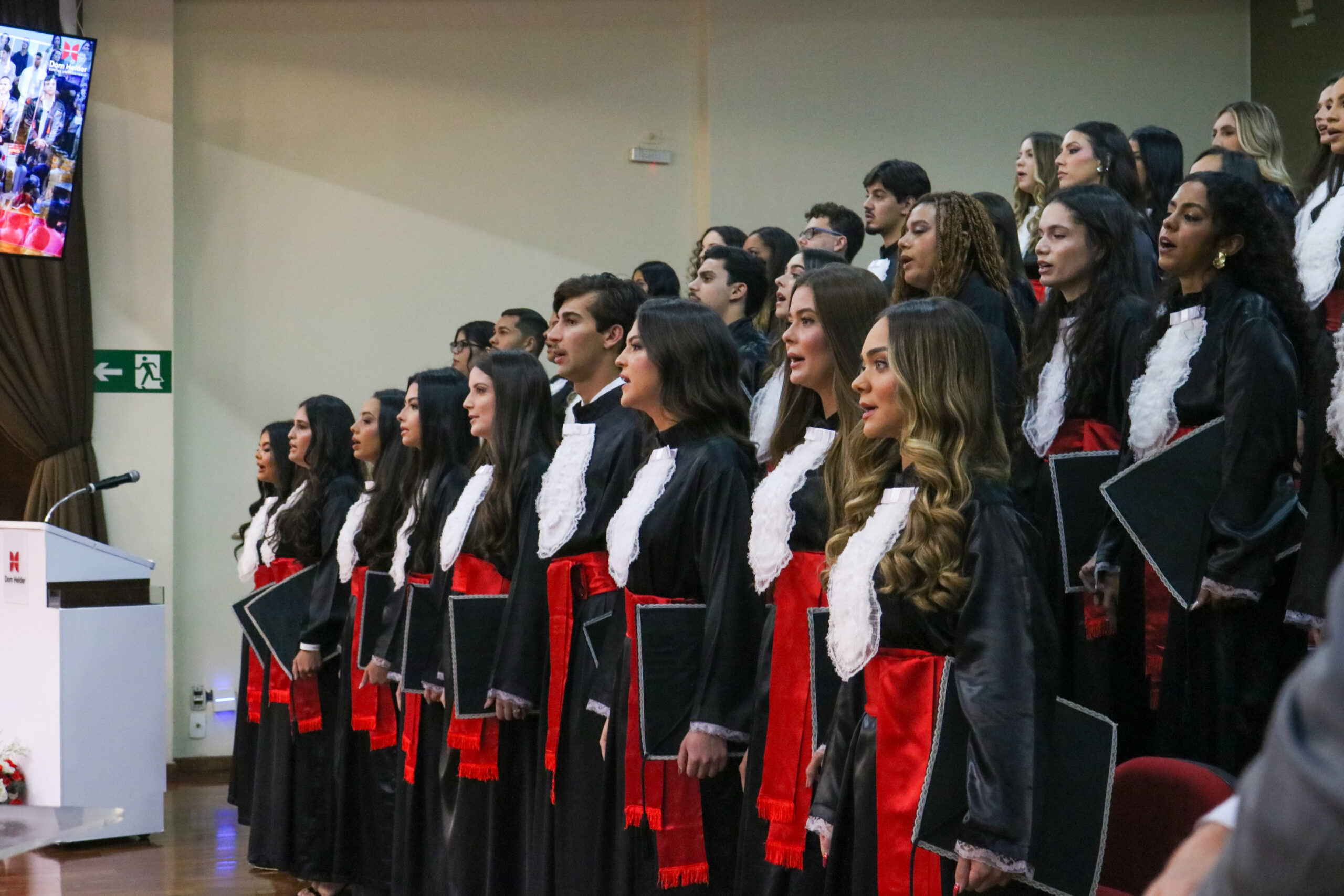 O auditório da Dom Helder recebeu, no último sábado (7), às 20h, a emocionante colação de grau de uma das turmas de Direito (matutino) da instituição. A ocasião foi marcada por muita celebração e afeto dos familiares e amigos presentes.