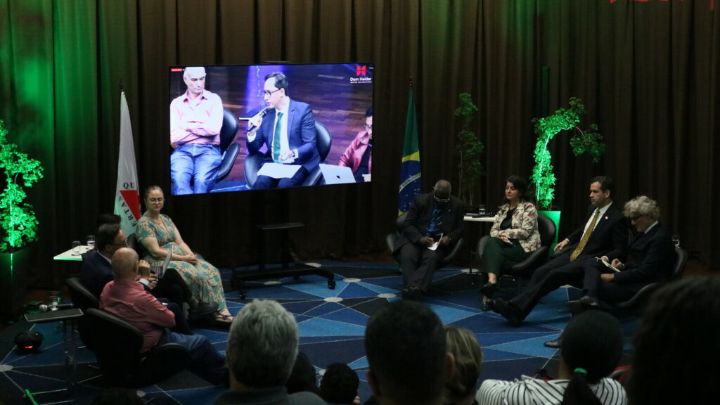Entre os participantes estiveram o Professor de Direito do Centro Universitário Dom Helder, José Adércio Leite Sampaio, que contribuiu com a palestra “Os desafios da guardiã do clima”, abordando o papel estratégico do Brasil na proteção ambiental global; a Procuradora-Chefe da Procuradoria Nacional de Defesa do Clima e do Meio Ambiente, Mariana Barbosa Cirne, trouxe uma análise sobre “O papel da litigância climática na defesa da Amazônia”;